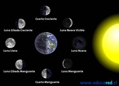 | Fases Lunares: son los cambios en la forma de la Luna debido a su traslación y la luz del sol que la ilumina en diferentes maneras. | Luna nueva: fase de la luna cuando esta negra y no se ve. |
