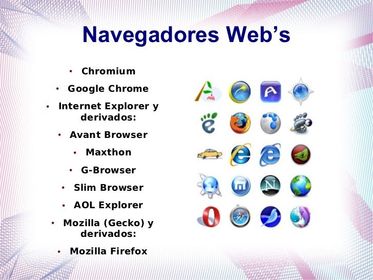 | NAVEGADORES | DEFINCION Es una aplicación que opera a través de Internet, interpretando la información de archivos y sitios web para que podamos leerla, (ya se encuentre ésta alojada en un servidor dentro de la World Wide Web o en un servidor local). |