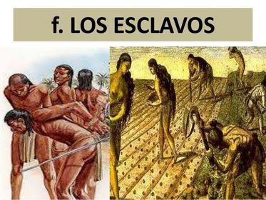 | ¿Quienes eran los esclavos? | Eran prisioneros de guerra, sin derechos realizaban construcción de obras publicas, el trabajo en las minas y en el ejercito. |