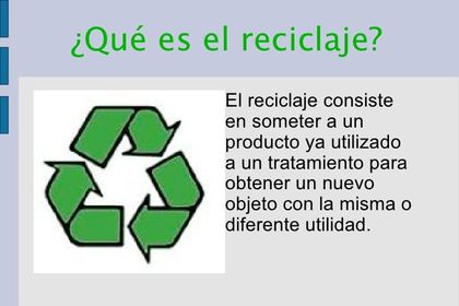 | ¿Qué es el reciclaje? | Reciclar es donde los residuos o materiales de desperdicio son recolectados y transformados en nuevos materiales que pueden ser utilizados o vendidos como nuevos productos o materias primas. |