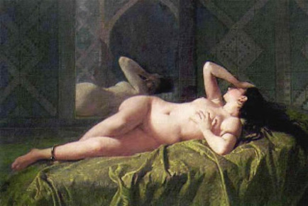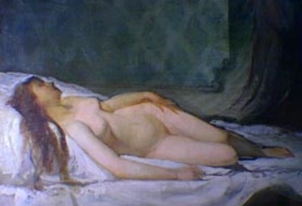 | Autor: E. Rosales Obra: Mujer desnuda dormida, 1865 Estilo: Pintura realista | |