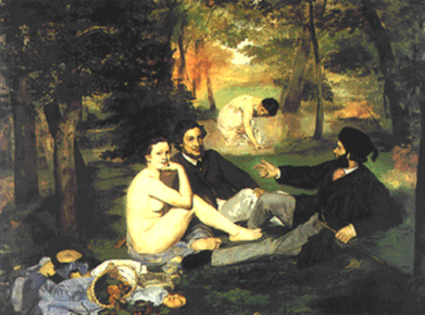 | Autor: Manet Obra: El almuerzo campestre, 1863 Estilo: Impresionista | |