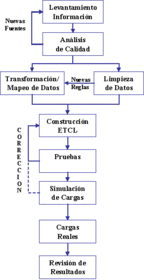| Análisis de Calidad: En esta etapa se verifica la calidad de los datos, con el propósito de establecer los tiempos reales de las etapas de Transformación, Limpieza y Mapeo de Datos. | Transformación/Mapeo de datos: Esta etapa, contempla la definición de los diccionarios con las reglas de transformación y el mapeo de campos entre las fuentes de origen y destino. |