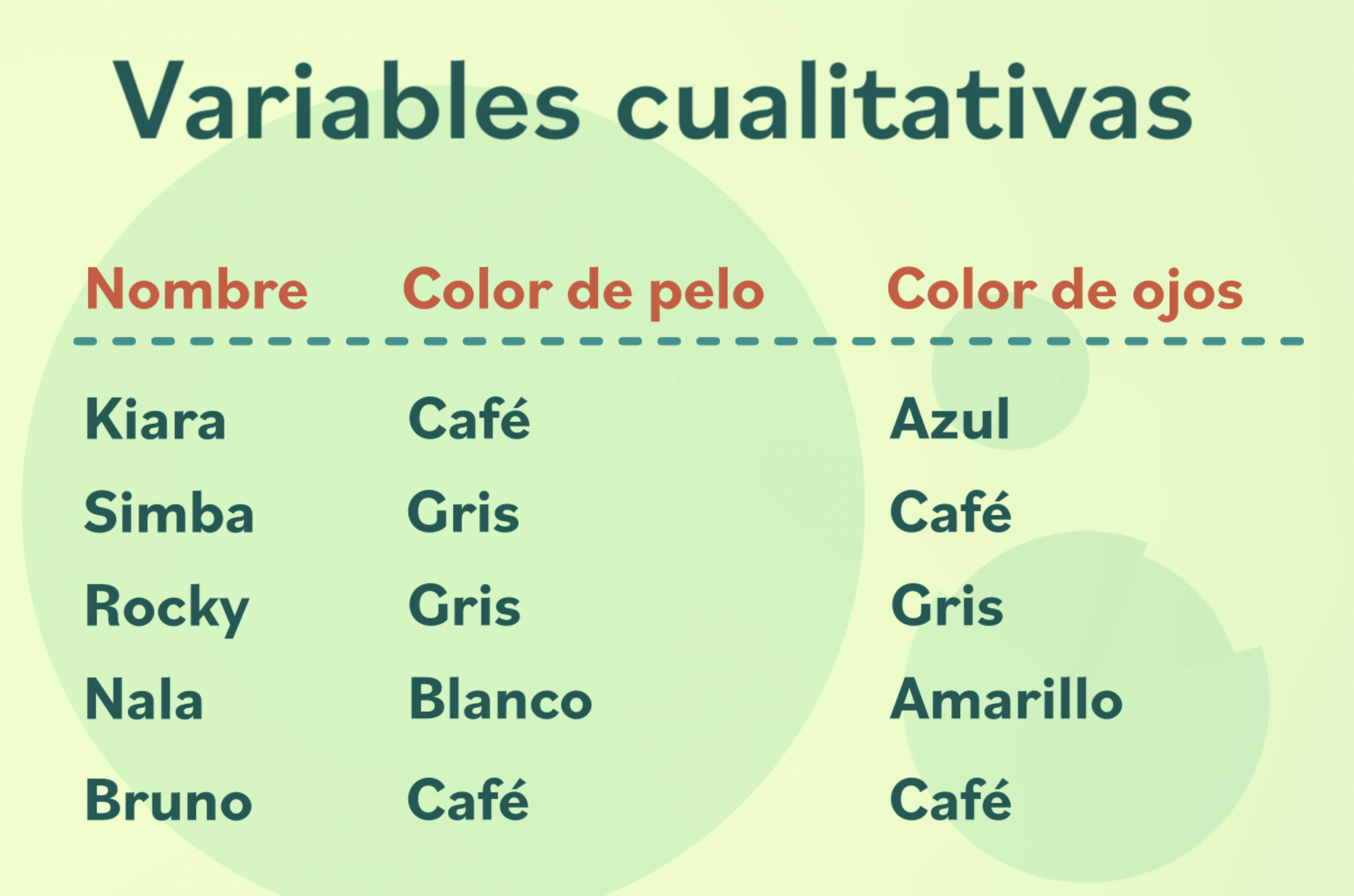 Variable cualitativa es una variable con datos que comprenden etiquetas o nombres que se usan para identificar un atributo de cada elemento | |