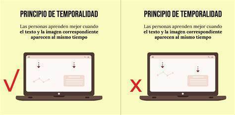Cuando las imágenes no están sincronizadas con el texto el aprendizaje se daña, sin embargo si las imágenes y textos aparecen de manera simultanea el conocimiento transmitido tendrá mas impacto. |