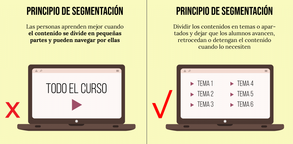 Cuando la información esta seccionada en segmentos cortos se avanza en lo transmitido y se les brinda ir a su ritmo, a parte que el contenido será mas interesante. |