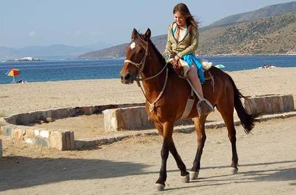 JINETA | Arte de montar a caballo que consiste en llevar los estribos cortos y las piernas dobladas, pero en posición vertical desde la rodilla. |