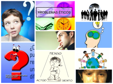 | PROBLEMAS MORALES | Son aquellos en los que se da una situación en las que hay varias posibilidades de actuación y no sabemos cuál de ellas escoger, ya bien sea porque las dos son igual de buenas o igual de malas. Un ejemplo de problema moral sería si en un examen tu amigo te pide que le dejes copiarse, por un lado puedes dejarle que se copie, sabiendo que tú si has estudiado y él no, o por otro lado, puedes decirle que no, en este caso seguramente tu amigo se enfadará y podréis acabar peleados. ¿Qué elegirías? |