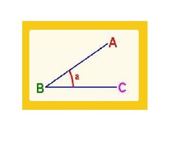 | Los ángulos pueden nombrarse de 3 formas distintas: por las letras mayúsculas correspondientes a las semirrectas, colocando en medio la letra del vértice: ABC ó CBA. Por una letra o número colocado en la abertura a por la letra del vértice B. | Un ángulo completo es el que esta delimitado por dos semirrectas que coinciden |