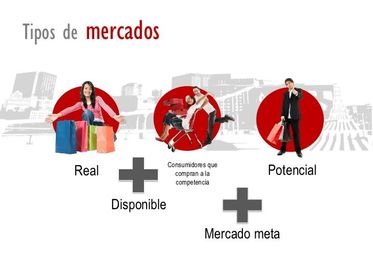 | El Mercado real actual | conjunto de personas que constituyen en un período considerado la clientela de un producto concreto. Son los consumidores y compradores efectivos. |