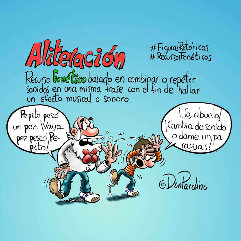 | ALITERACIÓN Es la repetición INTENCIONADA de un sonido Tres tristes tigres comen trigo en un trigal. | ¡Ojo a lo de INTENCIONADA! En "Las sábanas y las mantas están manchadas" hay una repetición de la letra "A", pero sin ningún tipo de intención, no pretende transmitir nada ni impresionar el oído del receptor de ninguna manera. Sin embargo en "El tRemendo Rugido del tigRe emeRgió entRe las Ramas de los áRboles" puede ser que esa repetición de la R se deba a la intención de imitar el rugido. Ahí SÍ hay aliteración |