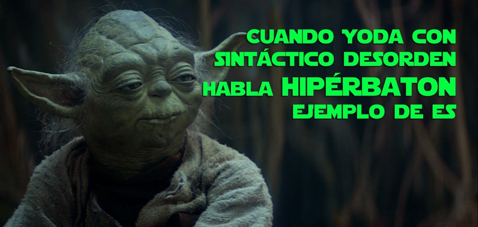 | HIPÉRBATON Alteración del orden esperable de los elementos en la oración. Volverán las oscuras golondrinas de tu balcón sus nidos a colgar ( --> Las oscuras golondrinas volverán a colgar de tu balcón sus nidos) | Imposible ver el futuro es. Del lado oscuro el velo ha caído, las Guerras Clon empezado ya han. |