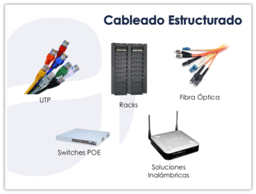 | Cableado Estructurado | Se conoce como cableado estructurado al sistema de cables, conectores, canalizaciones y dispositivos que permiten establecer una infraestructura de telecomunicaciones en un edificio. El cableado estructurado tiene el objetivo de integrar en un mismo sistema los servicios de: Voz Datos Vídeo |