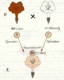 Excepciones a las leyes de Mendel Herencia Intermedia: Esta mezcla intermedia de la característica en el heterocigoto se presenta porque ninguno de los alelos del par es completamente dominante. | Herencia incompleta Ejemplo: Si una flor roja se cruza con una blanca, se produce un animal de un color intermedio, rosado; pero cuando dos miembros de esta generación se cruzan, los rasgos empiezan a segregarse de nuevo, mostrando que los alelos mismos, como opinaba Mendel, permanecen inalterados. |