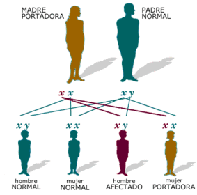 Herencia ligada al sexo Hay caracteres que sin ser caracteres sexuales primarios (órganos genitales, gónadas) o secundarios (barba del hombre, pechos de las mujeres), solo aparecen en uno de los dos sexos, o si aparecen en los dos, en uno de ellos son mucho más frecuentes. | Ejemplo: - Daltonismo (humanos) |