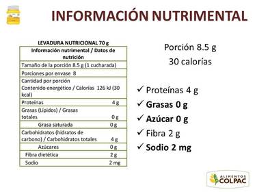 ¿Cuántas calorías tiene Levadura Nutricional por porción? | |