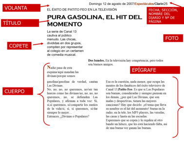 | ¿Dónde encontramos la noticia? | En los periódicos por ejemplo, encontramos otros textos, como ser: publicidades, cartas de lectores, editoriales, propagandas, historietas, entrevistas, etc. |
