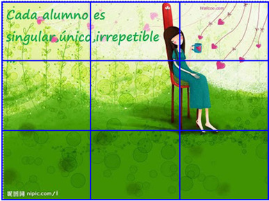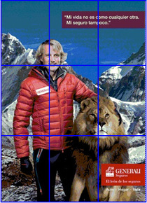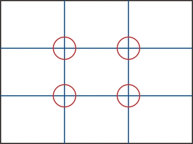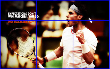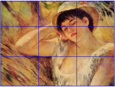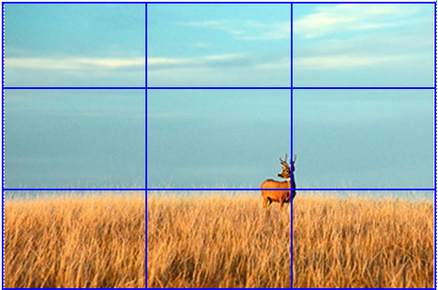 | Regla de los tercios: Dividimos un rectángulo en 3x3 partes y los puntos de intersección de las lineas son los puntos de atención visual. |