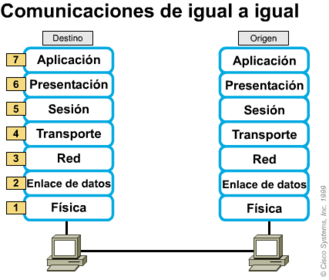 destino-origen: | Los paquetes de datos de una red parten de un origen y se envían a un destino. Cada capa depende de la función de servicio de la capa OSI que se encuentra debajo de ella |
