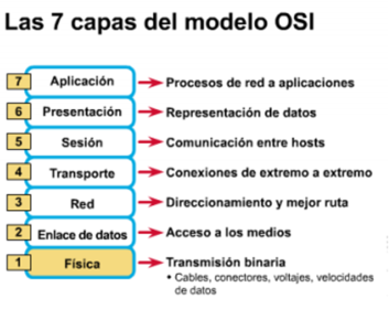 Menciona las 7 capas del modelo OSI | 1.- Física 2.- Enlace de datos 3.- Red 4.- Transporte 5.- Sesión 6.- Presentación 7.- Aplicación |