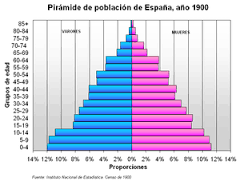 En estas fichas podemos observar como eran las pirámides de población de España en el S.XX y en el S.XXI