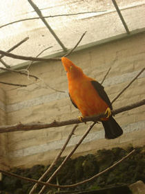 Gallito de las Rocas. | Nombre científico: ave nacional de perú. Nombre bulgar: gallio de las rocas El gallito de las rocas se alimenta de una gran cantidad de frutos. Es un ave forestal, es solitaria, sólo en época de reproducción se reúnen alrededor de 40 machos esperando ser escogidos por la hembra. Habita en los altos y húmedos bosques de neblina de la Amazonía ubicados en la vertiente oriental de la Cordillera. |