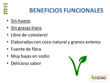 | ¿Cuáles son los beneficios funcionales de las Galletas de Coco? | |