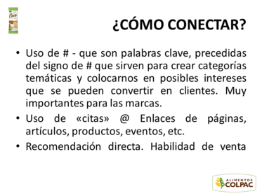 | ¡Terminaste! No olvides recomendar y utilizar nuestras redes sociales @Alimentoscolpac | |