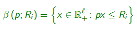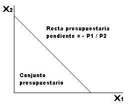 CONJUNTO PRESUPUESTARIO | recoge todas las cestas de consumo a las que un agente con renta Ri puede acceder cuando los precios de mercado vienen descritos por p |