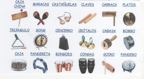 | Ejemplos de: instrumentos RÍTMICOS Maracas, Triángulo, Platillos, Cencerro, Claves, Pandereta, etc. Instrumentos de percusión mayor; Bombo, Timbales, Batería, Bongos,Gong ,Tumbadoras. |