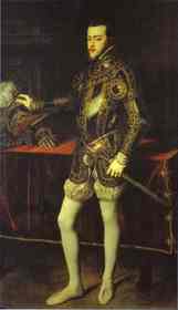 | FELIPE II | Rey de España, hijo y heredero de Carlos I, centró todo su esfuerzo en la administración de su inmenso imperio, que se extendía por Europa, América y Asia. Convertido en defensor de la ortodoxia católica, trató de impermeabilizar las fronteras españolas para impedir la entrada de ideas contrarias al dogma. Gran parte de su reinado, que comenzó en 1556, estuvo ocupado por constantes guerras, con Francia, con los turcos y con Inglaterra. El mayor problema lo tuvo en los Países Bajos, en los que el protestantismo se convirtió en elemento de cohesión nacional. En el plano interior tuvo que hacer frente a la sublevación de las Alpujarras y el asunto de Antonio Pérez le llevó a un enfrentamiento con Aragón. En el plano familiar destacó el problema con su heredero, el príncipe Carlos, que murió en extrañas circunstancias. Falleció en 1598. |