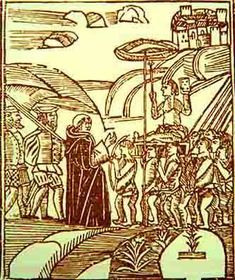 Requerimiento | Texto creado en el contexto de las Leyes de Burgos y usado durante la conquista de América, siendo leído por los conquistadores a los pueblos indígenas para exigirles, su sometimiento a los reyes españoles y a los conquistadores, y si no lo hacían, se les haría la guerra. |