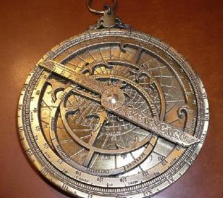 | Astrolabio | Instrumento de navegación usado en la Edad Media y que permite determinar la altura de un astro y deducir, según esta, la hora y la latitud. |