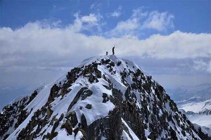 | (la) cima o (la) cumbre (las dos palabras se usan mucho metafóricamente: "Se ha celebrado una cumbre mundial sobre la desigualdad" / "Está en la cima de su carrera" | |