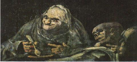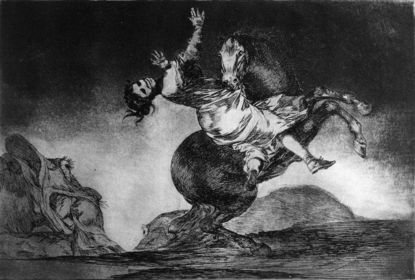| "Si sabrá más el discípulo" Grabado de la colección de Los Caprichos Sátira social sobre la ignorancia (el burro es la imagen de la ignorancia y la tozudez) | |