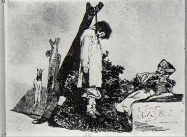 | Duelo a garrotazos Pinturas negras realizadas en la Quinta del Sordo Refleja la tendencia fratricida (las dos Españas) del pueblo español | |