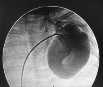 radiografia de contraste se inyecta una solucion de contraste, papilla de bario, se hace un placa y se ve el recorrido , se utiliza en infarto o angina de pecho | angiografia coronaria |