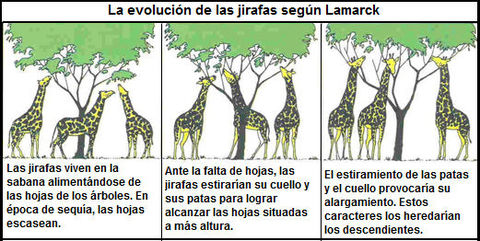Uso y des-uso Lamarck creía que durante la vida de cualquier organismo, las partes que este usa se desarrollan o crecen, mientras que las partes que no son estimuladas por el uso se atrofian. De aquí proviene la frase “la función hace al órgano” También pensaba que los cambios ocurridos durante la vida del individuo se transmiten a la siguiente generación. | |