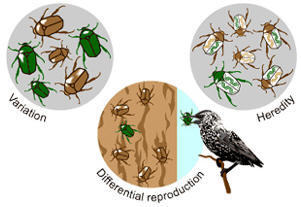 Reproducción diferencial Es una de las condiciones que deben ocurrir para que haya evolución de los seres vivos, porque es el mecanismo por el cual unos individuos tienen más descendencia que otros. Si un individuo es fuerte y sano, será elegido con más frecuencia por sus parejas para reproducirse, si este individuo tiene una característica que lo hace diferente a los demás (por ejemplo su fuerza o sus colores más vivos) este característica se pasará a su descendencia sin duda, quedando fuera las características de individuos que no han podido reproducirse, así que los descendientes tendrán ese rasgo y la reproducción habrá diferenciado esas cualidades, así que esa especie evolucionará con esos rasgos. La reproducción diferencial es la cual lleva como consecuencia última del resultado de factores como mortalidad, fertilidad, fecundidad, éxito en conseguir pareja y viabilidad de la descendencia. | La especie esta evolucionando con los rasgos según sus antecedentes |