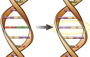 Teoría sintética Surge por la necesidad de explicar la variabilidad y herencia de las características genéticas, sobre la especiación en plantas conformaron la síntesis moderna la cual enfatiza la genética de las poblaciones como el punto central de la evolución. A demás explica las observaciones de variaciones de Darwin en términos de mutación o cambios en el ADN como la sustitución de nucleótidos, explica como la evolución opera en los niveles de genotipos, fenotipos y la frecuencia de alelos en una población. | En la imagen se puede ver un cambio en el ADN que es la sustitución de nucleótidos |