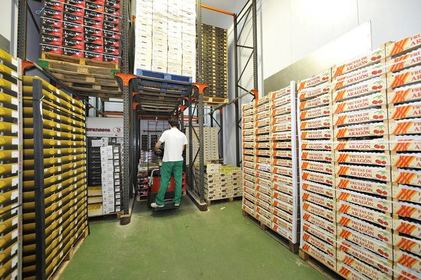 almacenamiento | Si la producción agrícola ha de almacenarse, es importante que el producto de partida sea de primera calidad. El lote a almacenar debe estar libre de danos o defectos y los recipientes que lo contengan deberán estar bien ventilados y ser lo suficientemente resistentes para soportar el apilado. En general, unas prácticas adecuadas de almacenamiento incluyen el control de la temperatura, de la humedad relativa, de la circulación del aire y del espacio entre las cajas para una ventilación adecuada, así como evitar una mezcla de artículos incompatibles. Los productos que se almacenan juntos deberán tolerar la misma temperatura, humedad relativa y nivel de etileno en el ambiente de almacenamiento. El control de temperatura durante el almacenamiento se puede facilitar si los edificios se construyen de forma cuadrada en lugar de rectangular; los rectangulares tienen más área de pared por pie cuadrado de superficie, siendo por tanto más alto el coste de enfriamiento. |