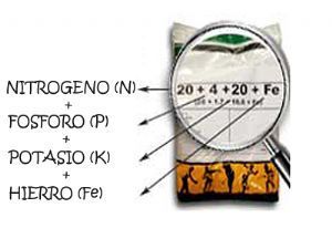 | Fórmula de los Fertilizantes | Estas fórmulas vienen representadas en los envases, por medio de tres números, que expresan el porcentaje de Nitrógeno (N), Fósforo (P2O5) y Potasio (K2O) respectivamente. |