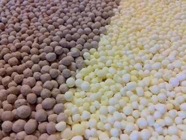 | GRANULADOS Su forma (en partículas de 1 a 4 mm.) permite una dosificación más precisa, libera los nutrientes de forma gradual y ayuda a que el manejo sea más cómo y que la distribución sobre el terreno sea más uniforme; ya sea aplicándolo manualmente o con equipo. | MACRO-GRANULADOS constituidos por grandes gránulos, de 1-3 centímetros de diámetro e incluso mayores, de liberación progresiva de los elementos nutritivos. |