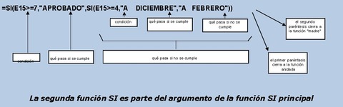 | Cuando frente a una condición tenemos dos o más posibilidades, tenemos que anidar una función SI dentro de otra función SI. | |