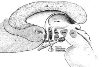 | NÚCLEO VENTROMEDIANO (Región infundibular) | Funciones: -Control de saciedad -Ragulan la actividad cortical por fibras colinérgicas -Vinculado a la vigilia y el sueño -¿Cómo yo me veo? anorexia |