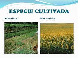 | El policultivo es aquel tipo de agricultura que usa cosechas múltiples sobre la misma superficie, imitando hasta cierto punto la diversidad de ecosistemas naturales de plantas herbáceas, y evitando las grandes cargas sobre el suelo agrícola de las cosechas únicas. | El monocultivo se refiere a las plantaciones de gran extensión con el cultivo de una sola especie, con los mismos patrones, resultando en una similitud genética, utilizando los mismos métodos de cultivo para toda la plantación lo que hace más eficiente la producción a gran escala.Ejemplo eucalipto, pino. |