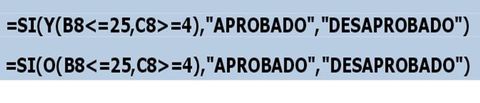 | Las funciones lógicas Y-O se utilizan anidadas dendtro de la función SI. Siguiendo el ejemplo de las fichas anteriores la sintaxis completa sería: |