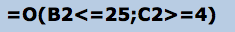 Función O Devuelve VERDADERO si se verifica una sola de las condiciones planteadas en su argumento. Si no se verifica ninguna condición, devuelve FALSO. |