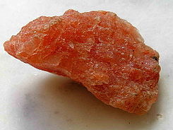 | CARNALITA (KMgCl3 6H2O) PROPIEDADES: -Cristales pseudohexagonales -Exfoliación cúbica -Incolora, blanca lechosa o, generalmente rojiza -Raya blanca -Brillo vítreo, a veces mate o graso -Dureza 2,5 | |