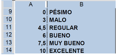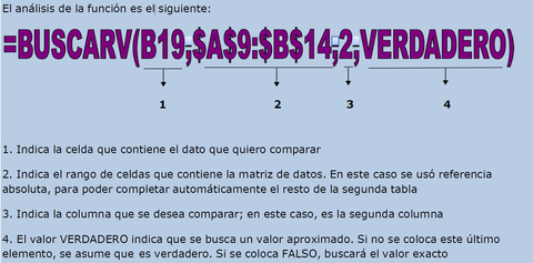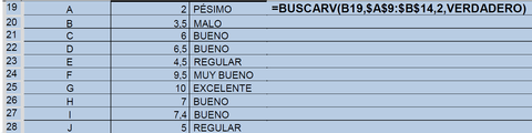 | Fórmula utilizada: =BUSCARV(B19,$A$9:$B$14,2,VERDADERO) |